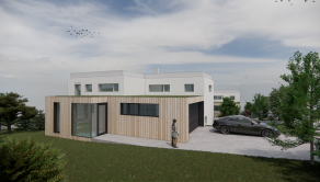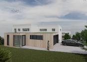 Projekt: k pozemku je k dispozícii štúdia rodinného domu (200 m² úžitková plocha) – možnosť výstavby bez starostí